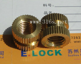 ,應該說是注塑行業目前最常用的一款銅螺母。右圖為黃銅材質的注塑預埋螺母。