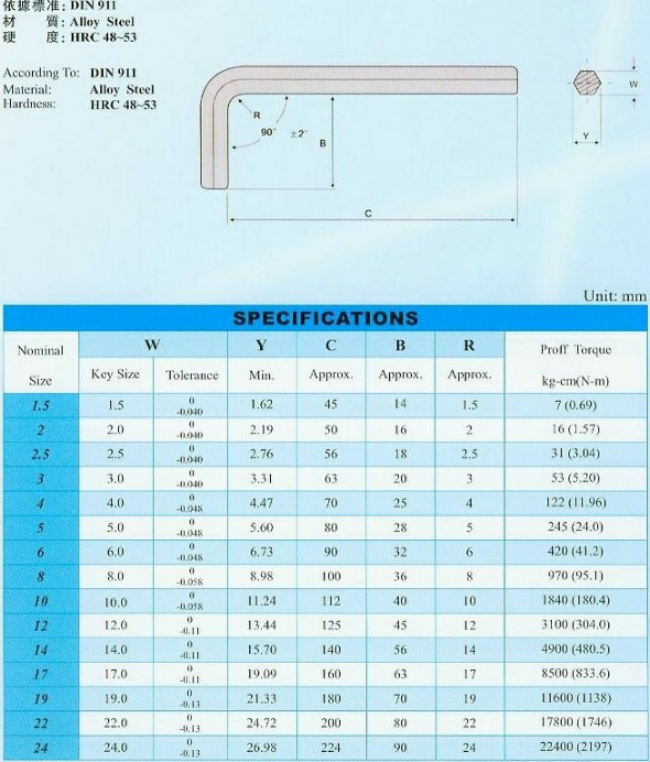 內六角扳手(技術參數)