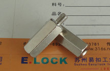 六角隔離柱除了用黃銅和碳鋼材料生產還可以做成不銹鋼的,材質采用SUS303不銹鋼,用在比較特殊的行業如需要防腐蝕的地方。
